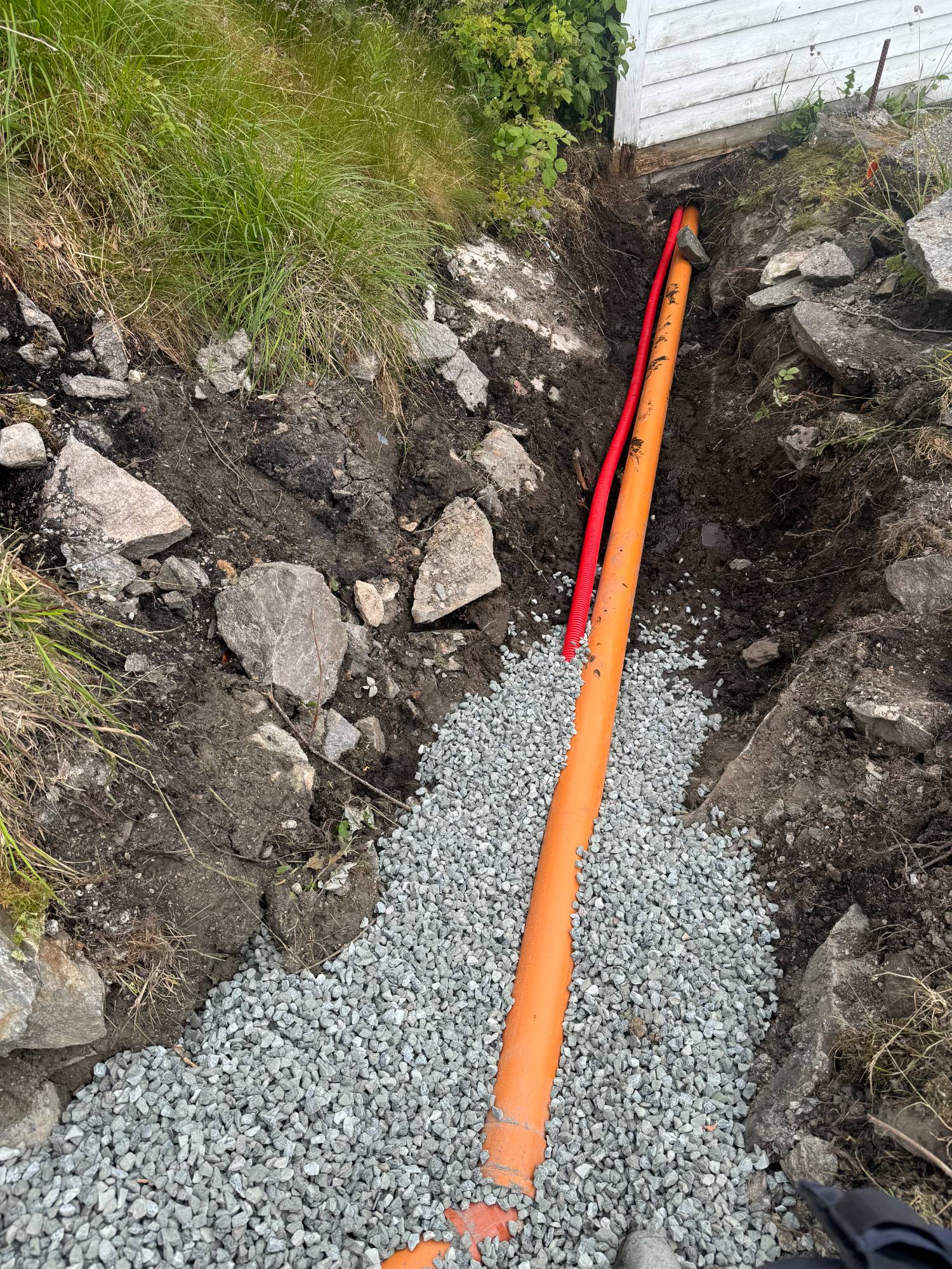 Vi graver ut grunnen og legger rør for vann og avløp, tilpasset både terreng og dine spesifikasjoner.